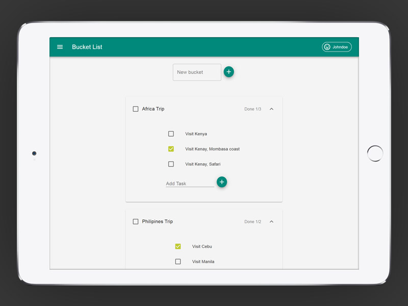 - Create and manage bucket lists with multiple tasks