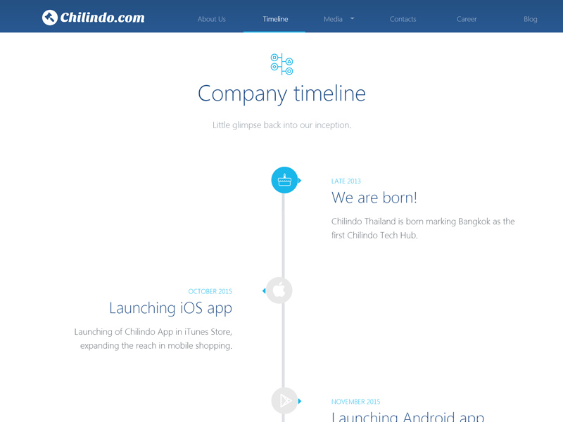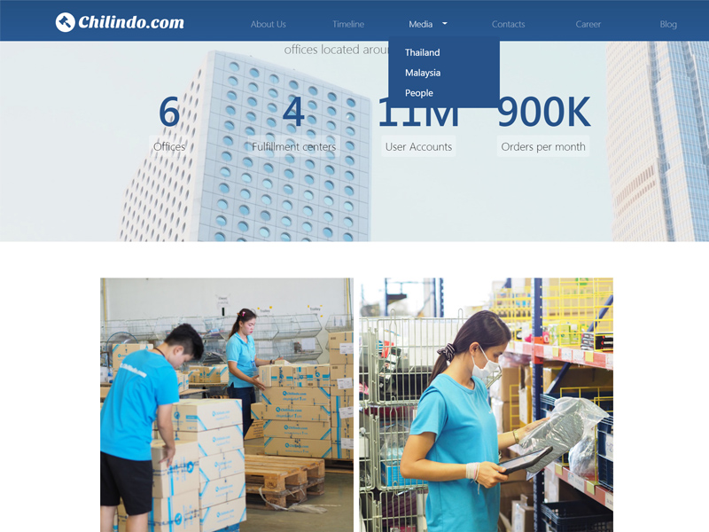 Chilindo Press is an e-commerce press release platform. I was contracted to build their company website using Angular 1.6 in an MVC architecture, with a mocked backend serving static JSON data in English and Thai. The project included translating design mockups from the Art Designer into fully functional components.