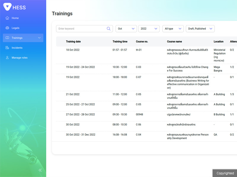 - Real-time management of incidents, trainings, and evaluations.