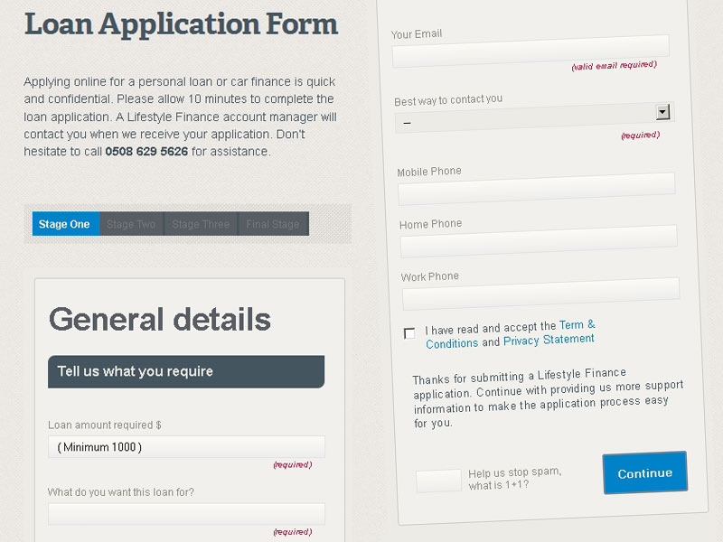 - Multi-stage loan application form integrated with the client’s backend system.