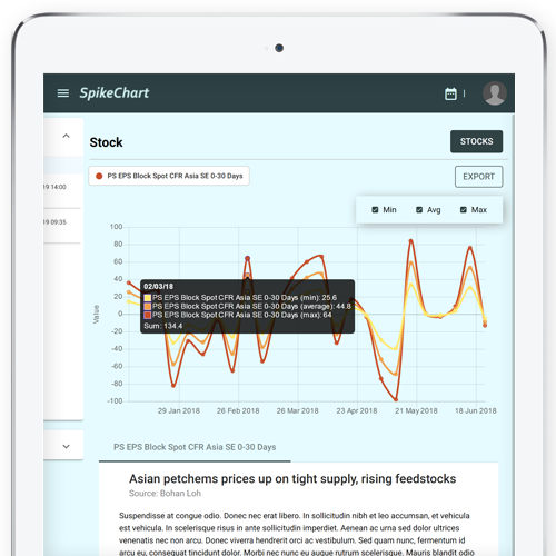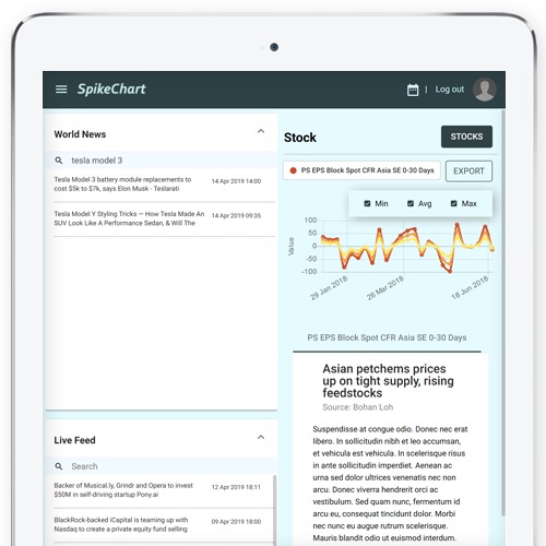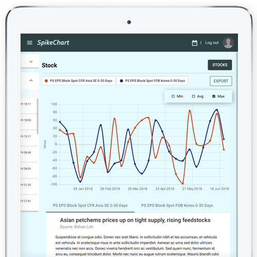 The SpikeChart application allows users to view and manage stock data through dynamic charts built with Chart.js. The app integrates a real-time API search feature to fetch the latest stock data, displaying minimum, average, and maximum values on the charts. A sidebar provides users with the latest news, and news items can be viewed in a popup modal. Users can also post the latest feeds, rate them, and search for specific stock data with full or partial matches.