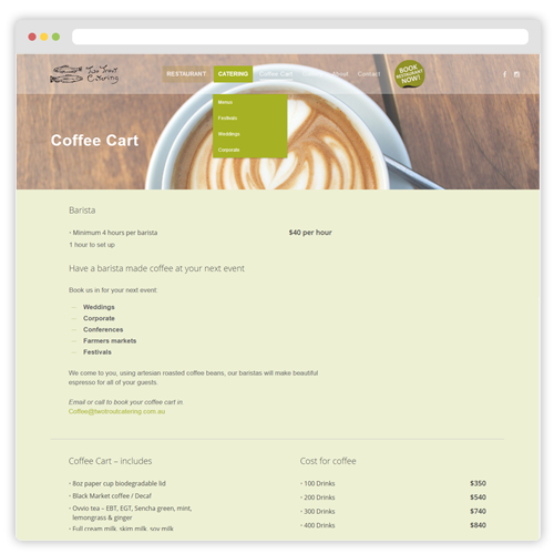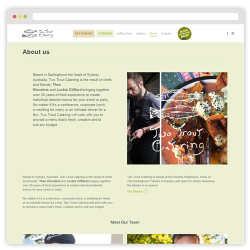 Two Trout Catering, website